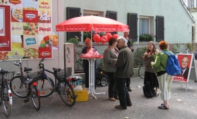 60 Rosen, ein Luftballon, Dutzende von Gummibärchen und unzählige Broschüren wechselten am Samstag, den 12.9., ihre Besitzer. An unserem (übrigens neu gekauften) Stand vor dem "Handelshof" gab es dazu Informationen zur Bundestagswahl aus erster Hand. Wichtige Botschaft: Mit der Erststimme Lothar Binding wählen!