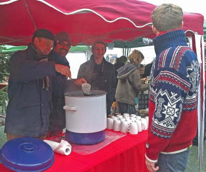 Premiere auf dem Weihnachtsmarkt: Am 7. Dezember verkaufte unser Ortsverein erstmals Glühwein auf dem Wilhelmsplatz. Eberhard und Jann brauten das Getränk frühmorgens nach einem alten Familienrezept ein. Um kurz nach 16 Uhr waren alle Portionen ausgeschenkt und abgetrunken. Kommentar einer begeisterten Verkosterin: "Mann, ist der gut!"