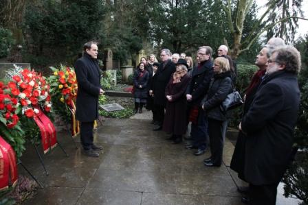 Am 4. Februar 2011 hätte Friedrich Ebert seinen 140. Geburtstag begehen können. Anlass genug für die in der Pfaffengasse beheimatete Reichspräsident-Friedrich-Ebert-Gedenkstätte, den (bislang) bedeutendsten Heidelberger Sozialdemokraten mit mehreren Veranstaltungen zu ehren! Seine letzte Ruhestätte hat das erste demokratisch gewählte deutsche Staatsoberhaupt auf dem Bergfriedhof gefunden, also auf der Gemarkung unseres Ortsvereins. Bei der Kranzniederlegung am 4. Februar waren wir daher mit einer kleinen (aber feinen) Delegation vertreten.