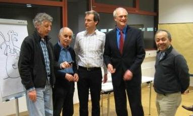 Sebastian Klassen, Alex Füller, Eberhard Schick, Lothar Binding und Nihat Genc (von links nach rechts) Es riecht noch nach Farbe in den neu eingerichteten Seminarräumen des Paritätischen Wohlfahrtsverbands im „Forum am Park“. Und Farbe kam auch ins Spiel, als Lothar Binding dort am 23. Januar 2009 zahlreichen interessierten Zuhörerinnen und Zuhörern die Hintergründe der aktuellen Finanz- und Wirtschaftskrise erläuterte – mit dicken Farbstiften zeichnete er dabei auf ein riesiges Stück Papier ein Schema, das allen Anwesenden den äußerst komplexen Sachverhalt anschaulich vor Augen führte. Eingeladen zu der Veranstaltung mit dem Heidelberger Bundestagsabgeordneten hatten die SPD-Ortsvereine Weststadt und Bergheim.